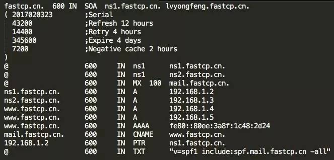 為看到實際效果,我在我本地完整請求一次 www.fastcp.cn ,來看看是否按照這個流程來給出結(jié)果,如下圖中使用 dig 工具的域名請求: