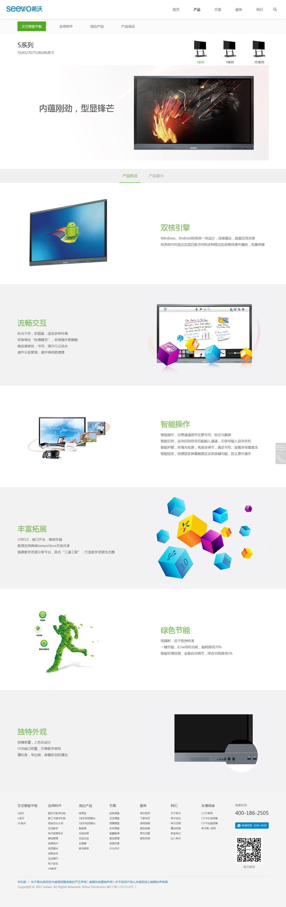 創(chuàng)業(yè)之初,利用在觸摸技術(shù)研究、液晶顯示驅(qū)動、板卡設(shè)計、系統(tǒng)集成、成本控制、軟 件開發(fā)和工業(yè)設(shè)計等方面積累的競爭優(yōu)勢,進入基于液晶顯示的人機交互智能應(yīng)用領(lǐng)域,推出了“希沃(seewo)”交互智能平板系列產(chǎn)品和整體解決方案。憑借強大的功能、人性化的操作界面、時尚的外觀設(shè)計、卓越的品質(zhì)、專業(yè)的培訓(xùn)和完善的售后服務(wù),希沃(seewo)產(chǎn)品被廣泛應(yīng)用在課堂教學(xué)、商務(wù)會議、商業(yè)展示、指揮控制等領(lǐng)域,市場覆蓋國內(nèi)各省市,并出口到美洲、歐洲、澳洲、東亞等多個國家和地區(qū)。