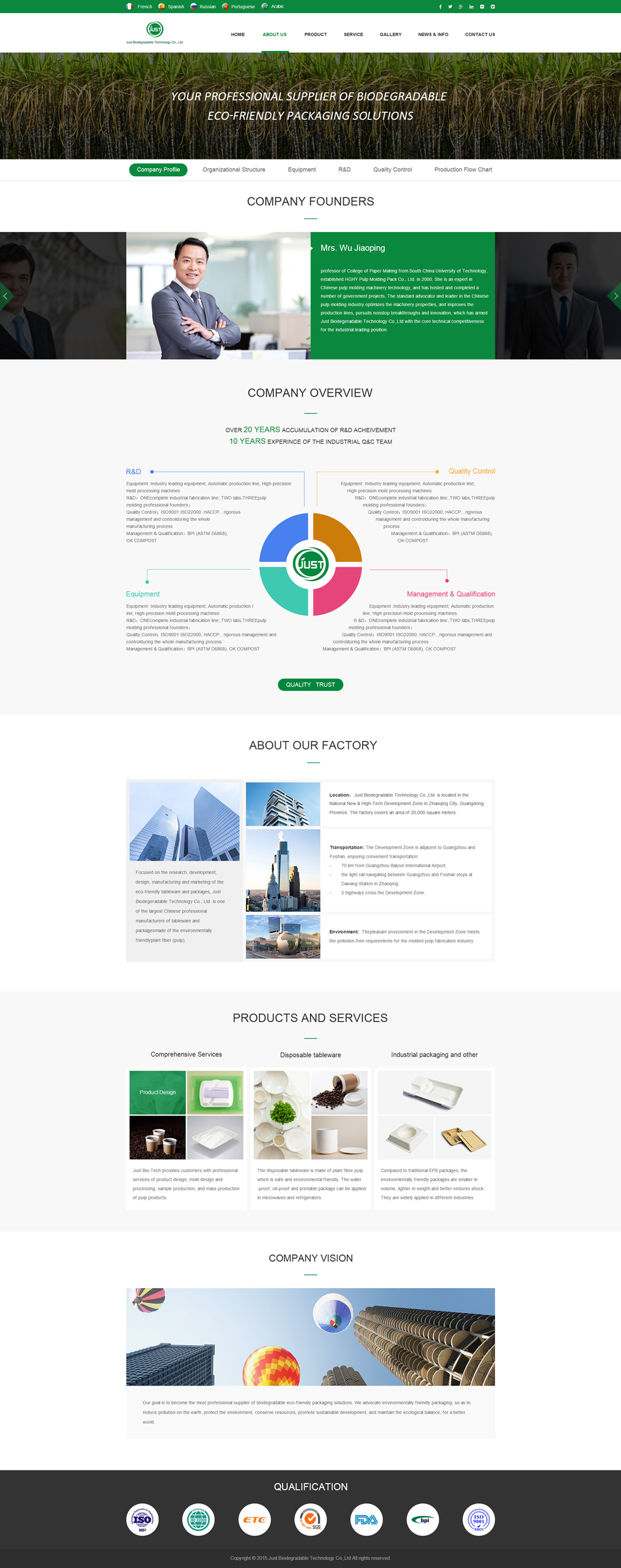 Focused on the research, development, design, manufacturing and marketing of the eco-friendly tableware and packages, Just Biodegeradable Technology Co., Ltd. is one of the largest Chinese professional manufacturers of tableware and packagesmade of the environmentally friendlyplant fiber (pulp).