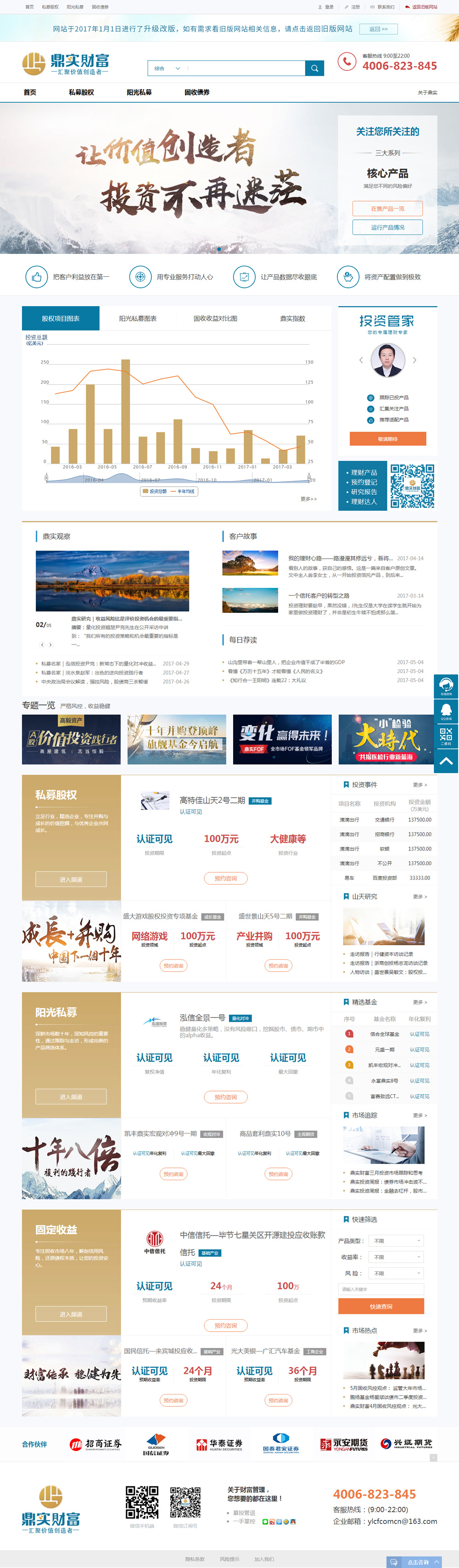 基于對一、二級市場的深刻理解,到目前為止我們形成了覆蓋多個市場的產(chǎn)品線。一級市場方面,我們與國內(nèi)多家知名PE、VC機構(gòu)達成長期戰(zhàn)略合作;針對具體項目,我們均深入具體項目端,追求對企業(yè)價值與成長邏輯的全面了解與判斷;已對多家企業(yè)進行了股權(quán)投資。二級市場方面,與國內(nèi)大多數(shù)知名陽光私募機構(gòu)有溝通或合作,已連續(xù)發(fā)行數(shù)期二級市場組合基金。通過我們自身研究團隊對大宗商品、股票、債券、金融衍生品的理解與跟蹤,在不同時期對資產(chǎn)組合進行合理地配置與布局;一直為客戶取得穩(wěn)健的資產(chǎn)回報。