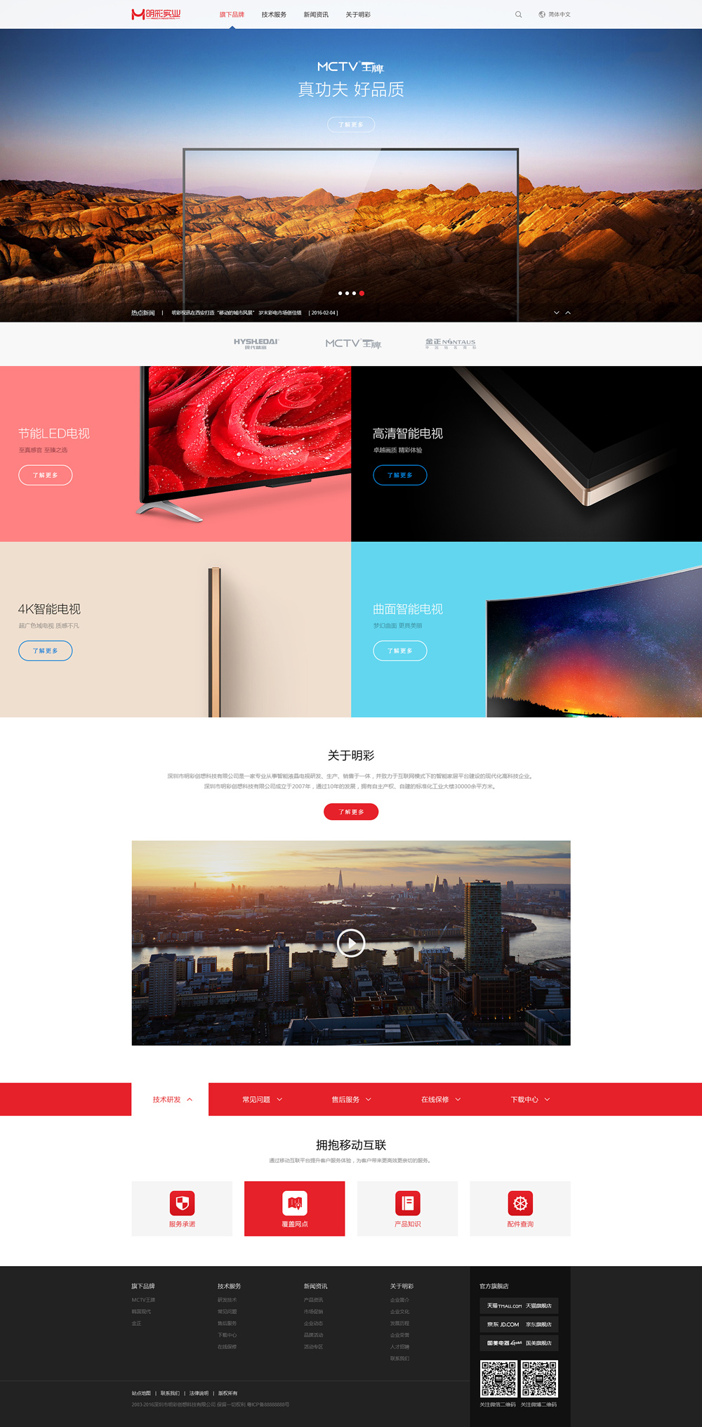 明彩創(chuàng)想公司生產(chǎn)的產(chǎn)品全線通過國家3C強制性認(rèn)證,共獲得30張獨立3C證書,其國內(nèi)市場“MCTV王牌 現(xiàn)代科技”品牌已發(fā)展500多家區(qū)域代理商、零售網(wǎng)點近2000家,售后服務(wù)網(wǎng)點達(dá)80000多個,并出口到朝鮮、俄羅斯、東南亞、非洲、歐美等國家和地區(qū)。
