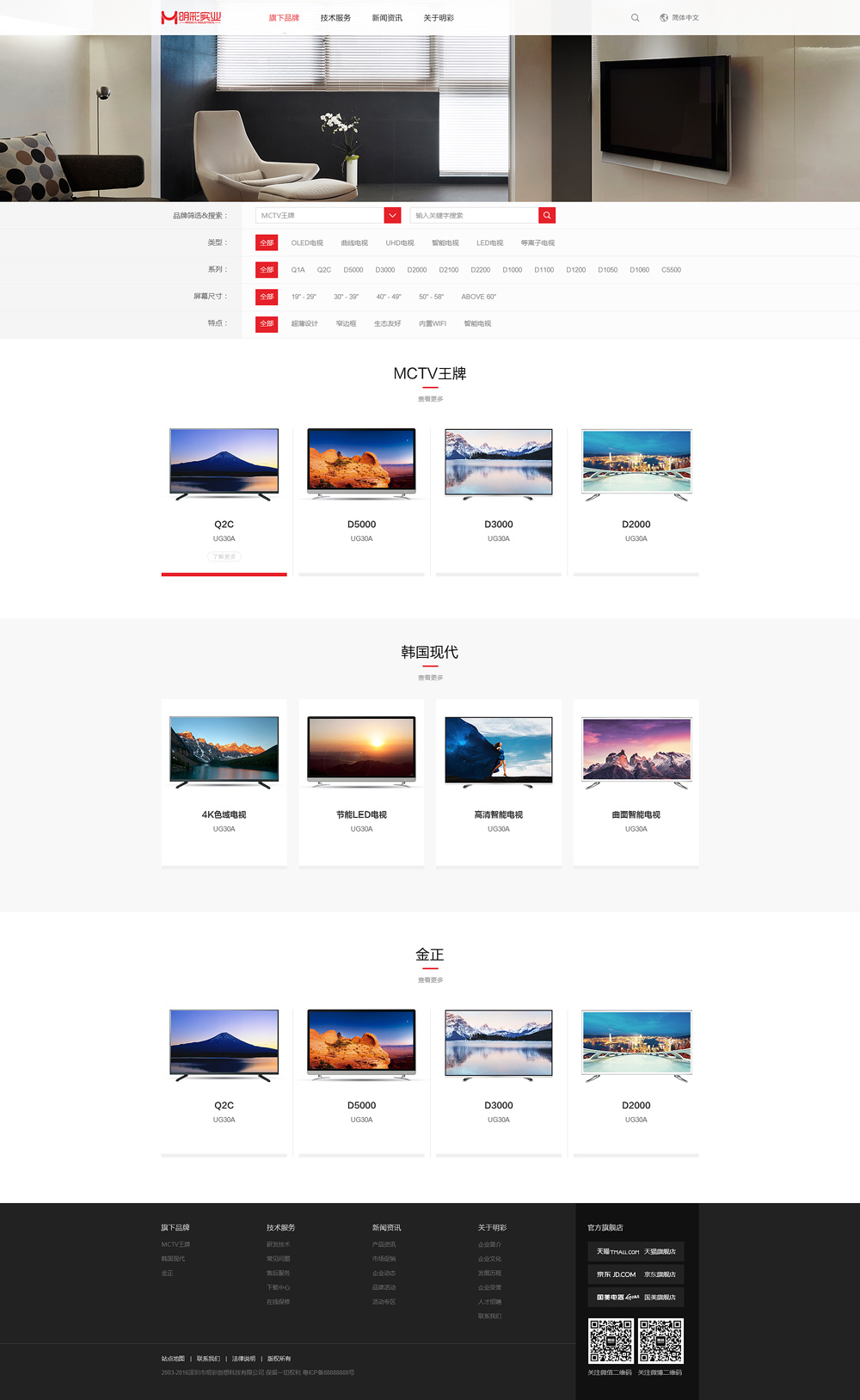 公司推行規(guī)范化、程序化、科學(xué)化的管理,狠抓產(chǎn)品品質(zhì)及體系建設(shè),公司先后取得ISO9001國際質(zhì)量管理體系認(rèn)證和ISO14001環(huán)境管理體系認(rèn)證,產(chǎn)品全面通過3C、ROHS、CE、CB認(rèn)證,規(guī)范的生產(chǎn)管理和相對完整的產(chǎn)業(yè)鏈體系造就了自主品牌“MCTV王牌、現(xiàn)代科技、明彩”等產(chǎn)品的優(yōu)異品質(zhì)。
