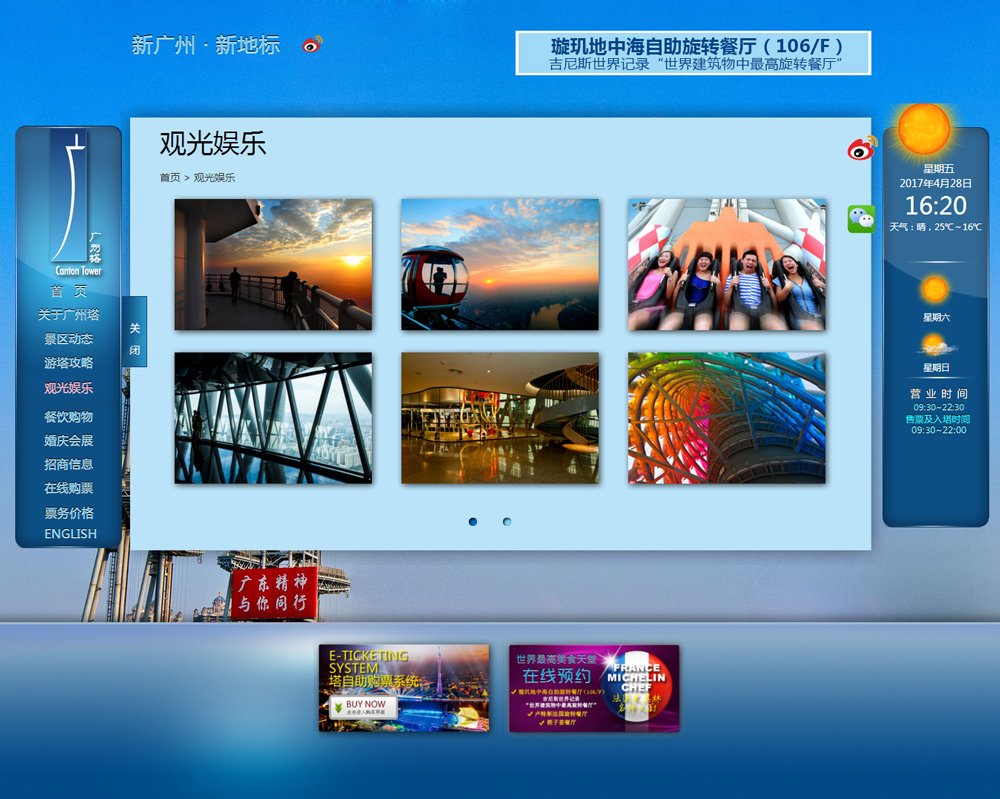廣州塔位于廣州城市新中軸線與珠江景觀軸交匯處,與舉辦第十六屆亞運會開閉幕式的海心沙島和廣州市21世紀CBD區(qū)珠江新城隔江相望,目前是中國第一、世界第三的旅游觀光塔。廣州塔于2005年11月25日動工建設(shè),2010年9月28日,廣州市城投集團正式舉行新聞發(fā)布會,正式公布“廣州塔 Canton Tower”的名稱。2010年10月1日,廣州塔正式公開售票接待游客。在2010年第十六屆亞運會開幕式,廣州塔流光溢彩的燈光夜景和艷光四射的焰火表演贏得了世人的矚目。